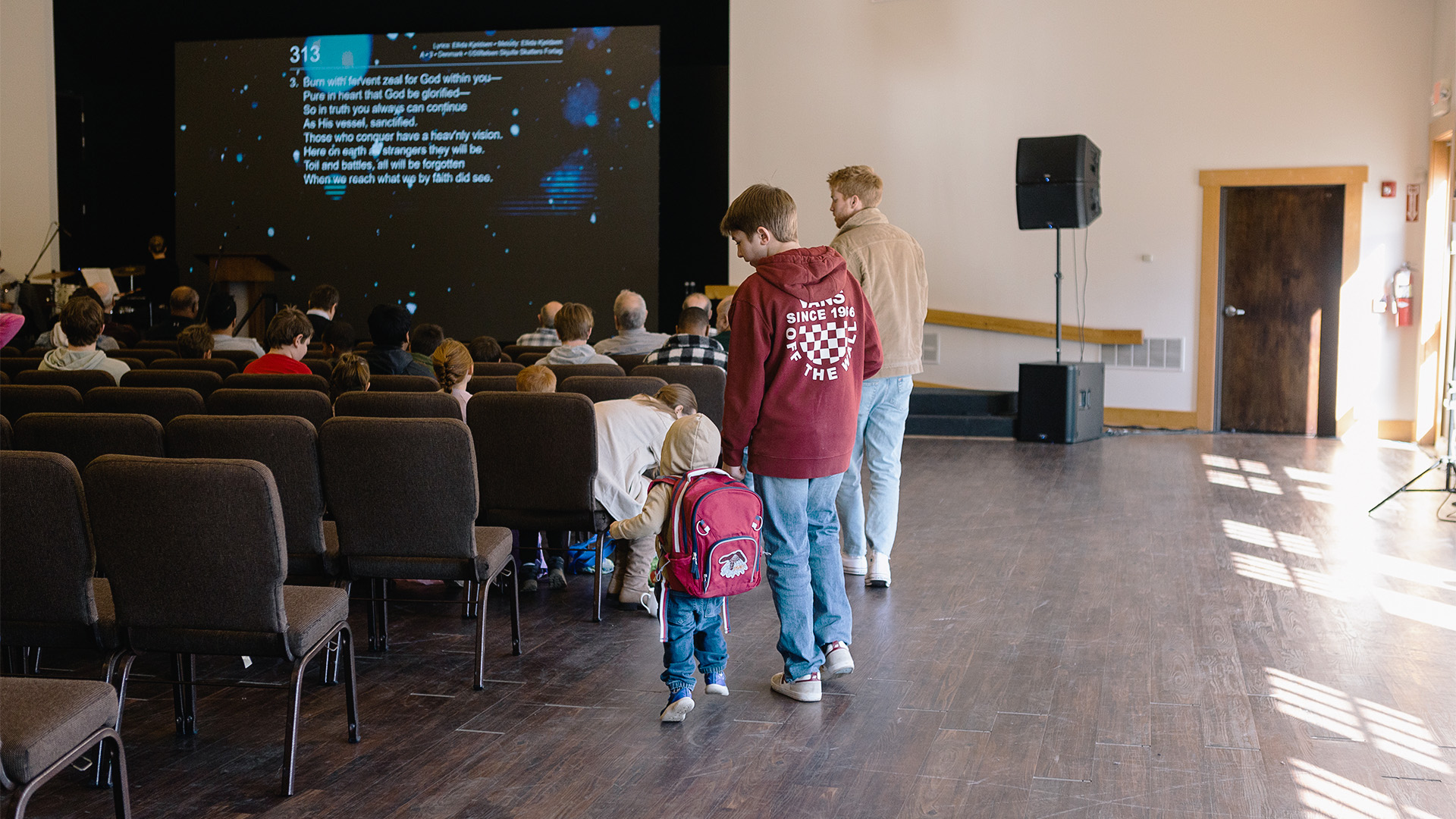 After Barry concludes his message, the assembly’s voices blend together in a congregational song. This is followed by another gripping message from a second member, and the children are dismissed for Sunday school.